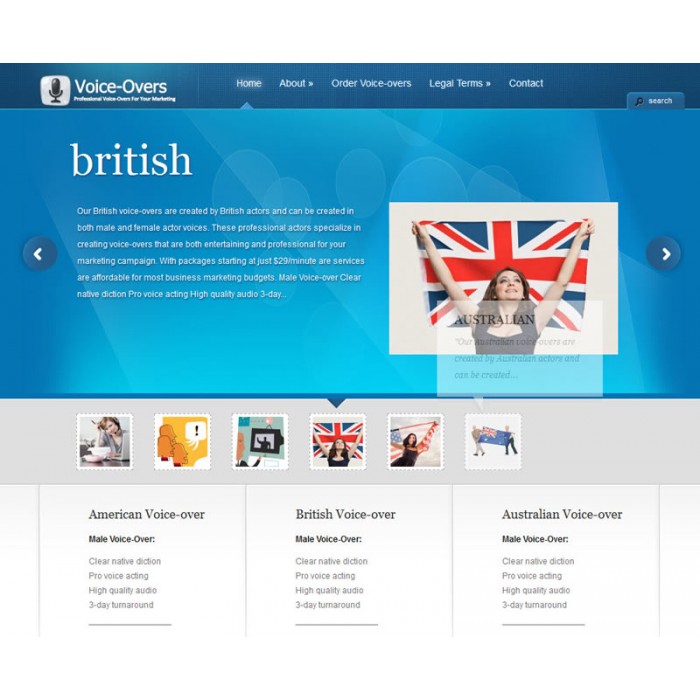 This Website is a Voice Over reseller Turnkey website that doesn’t require any experience or maintenance on the owner’s behalf. All VoiceOvers are outsourced to professional, native speaking Voiceover actors.